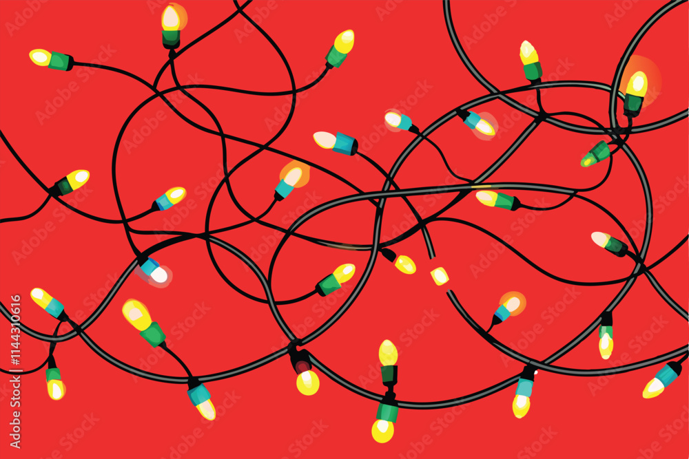 Samolepka A chaotic yet beautiful tangle of multicolored Christmas lights, glowing brightly against a dark background