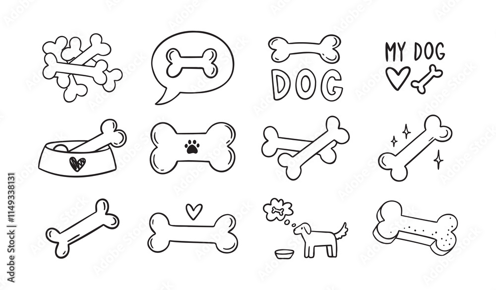 Samolepka Hand drawn doodle bone for dogs set