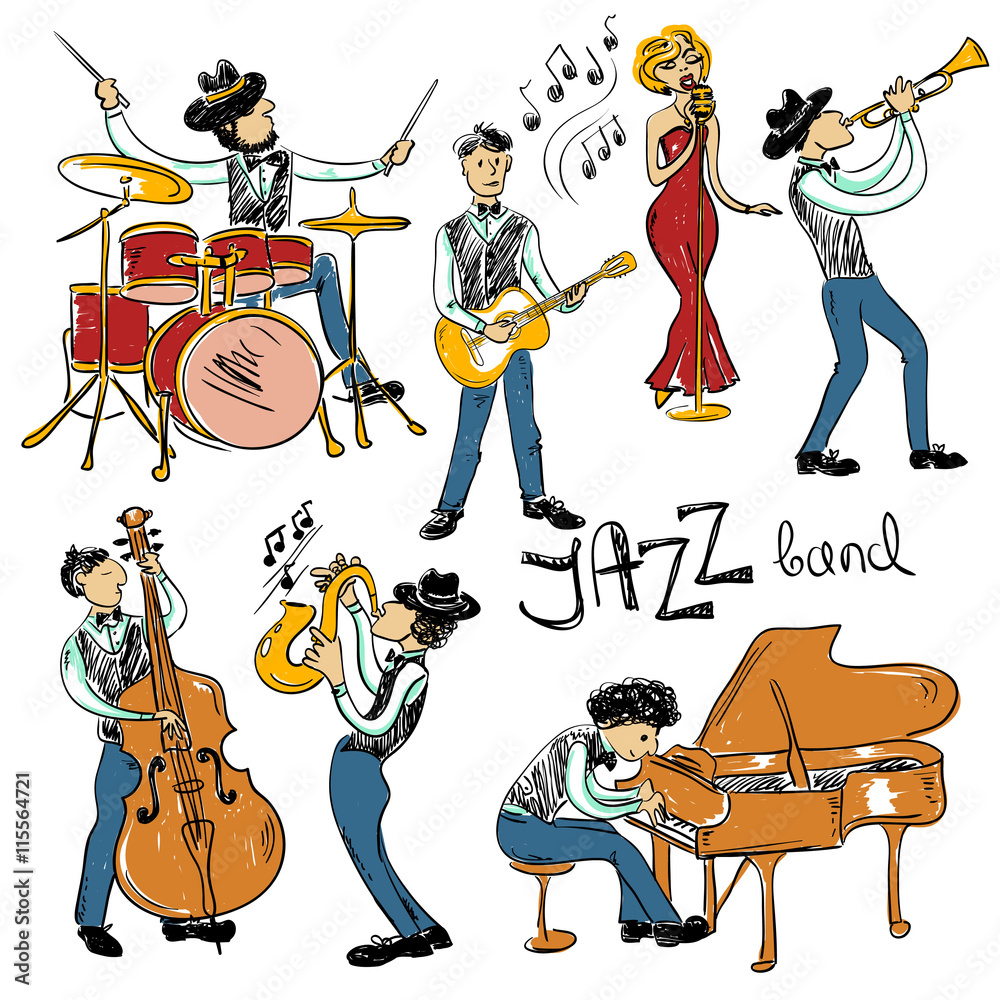 Samolepka Set Of Isolated Colorful Jazz Musicians.