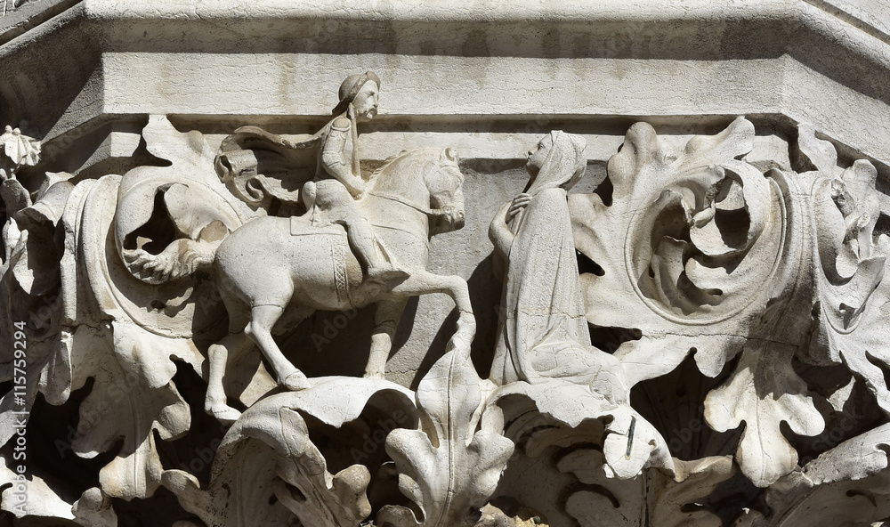Samolepka Medieval scene with cavalier and lady, from Doge palace ancient capital, in St M