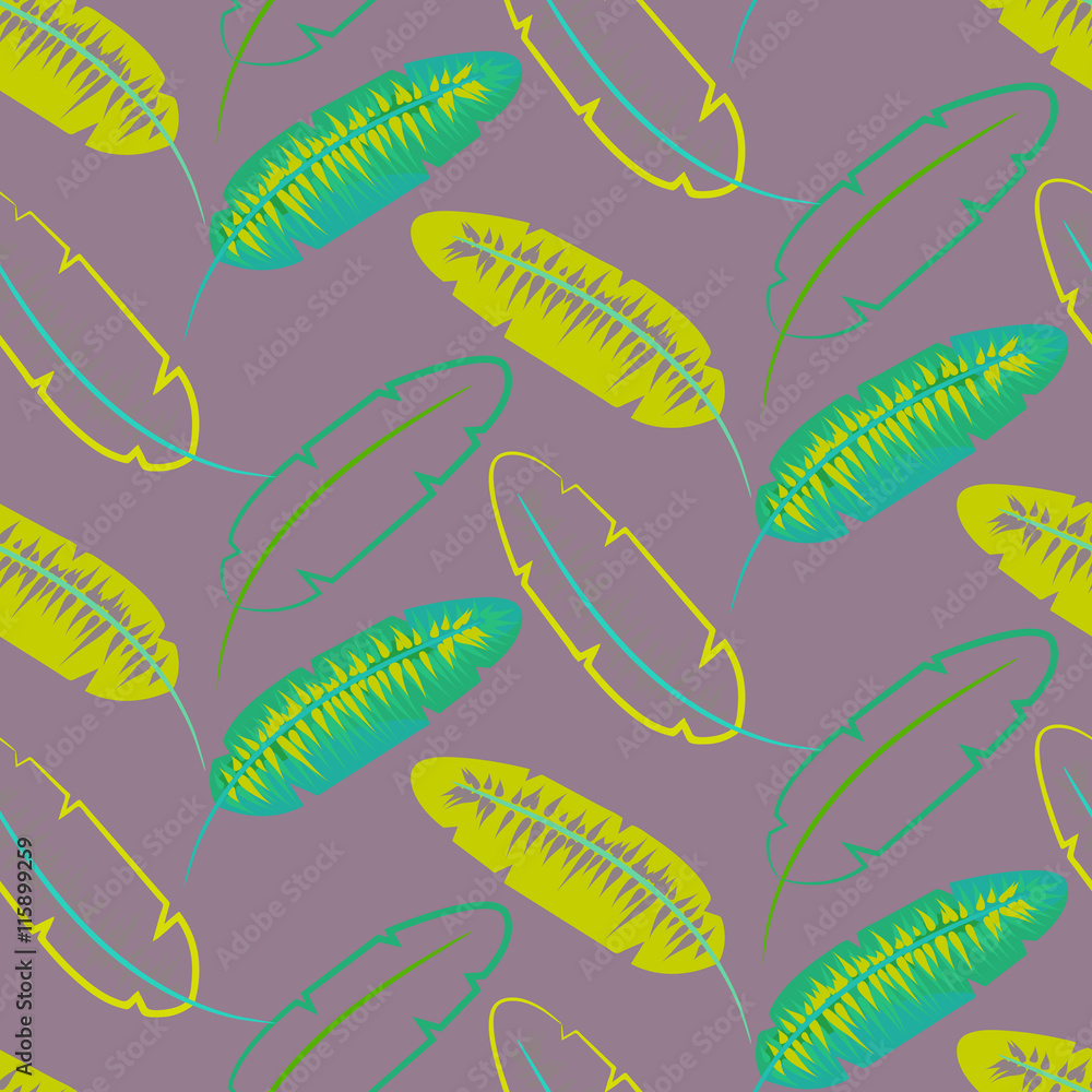 Samolepka Green banana palm leaves seamless vector pattern on purple background
