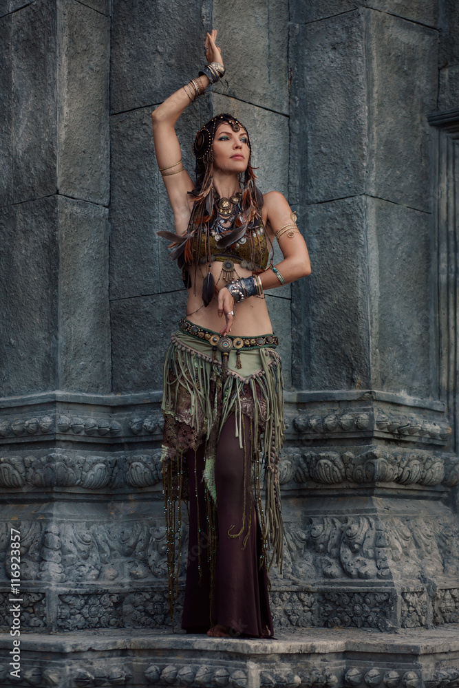 Samolepka beautiful tribal woman dancer in old temple