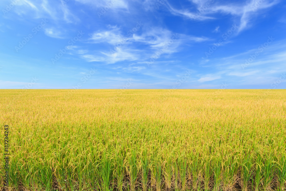 Samolepka Rice plant. Yellow rice field in Nakhon Pathom province