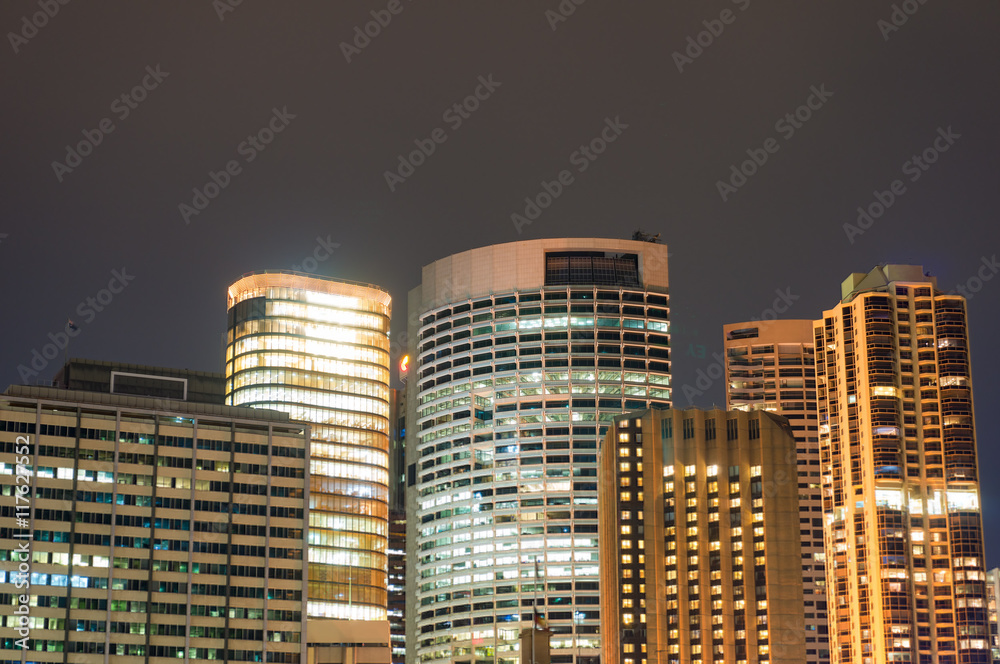 Samolepka Modern cityscape at night background