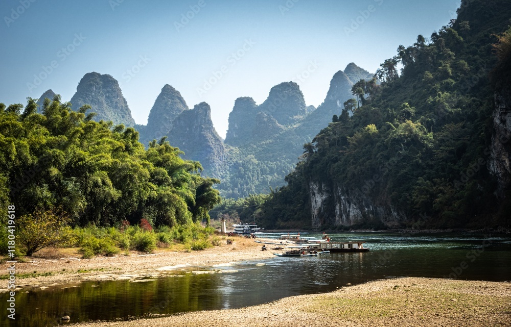 Samolepka Guilin Cruise: Li River flows through a green forest and karst mountains