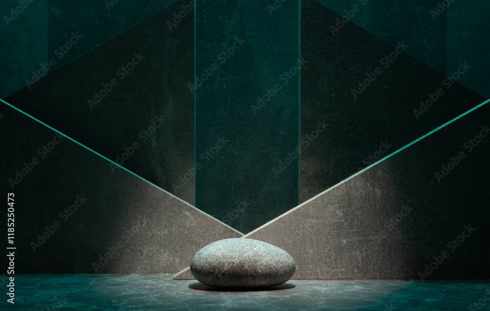 Samolepka composition with natural zen stone and geometric lines for podium background