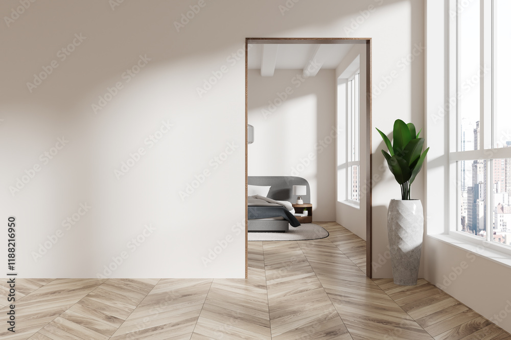 Samolepka Modern interior mockup with blank wall and doorway in minimalistic design