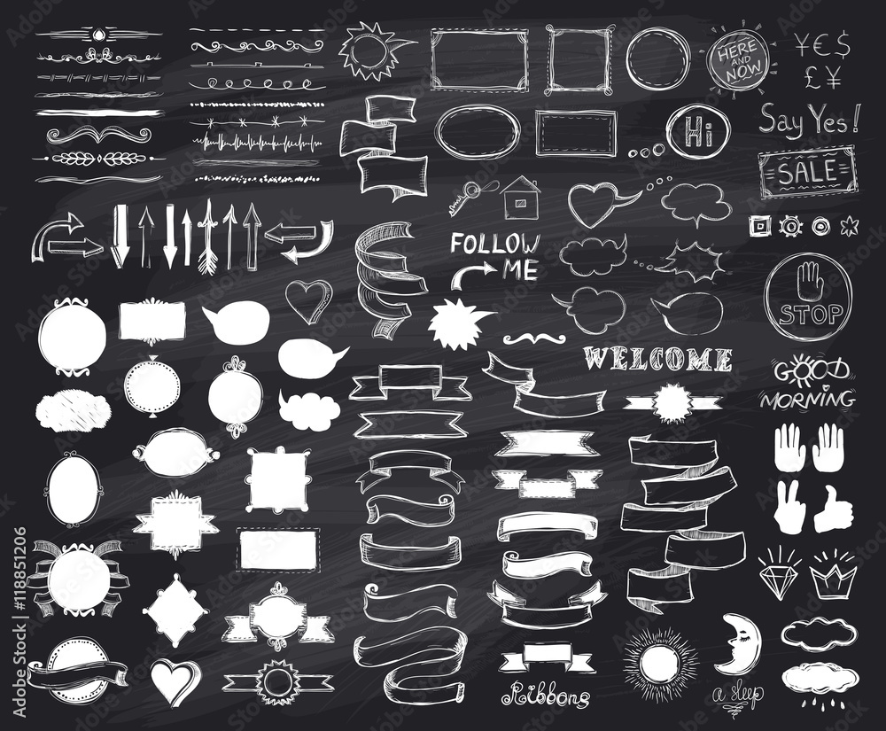 Samolepka Chalk hand drawn sketch elements on chalkboard, vector illustration, doodle gra