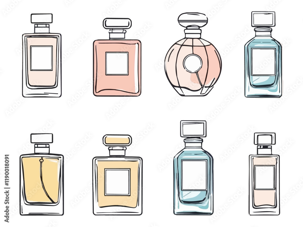 Samolepka Flacons de parfum élégants sur fond blanc uni