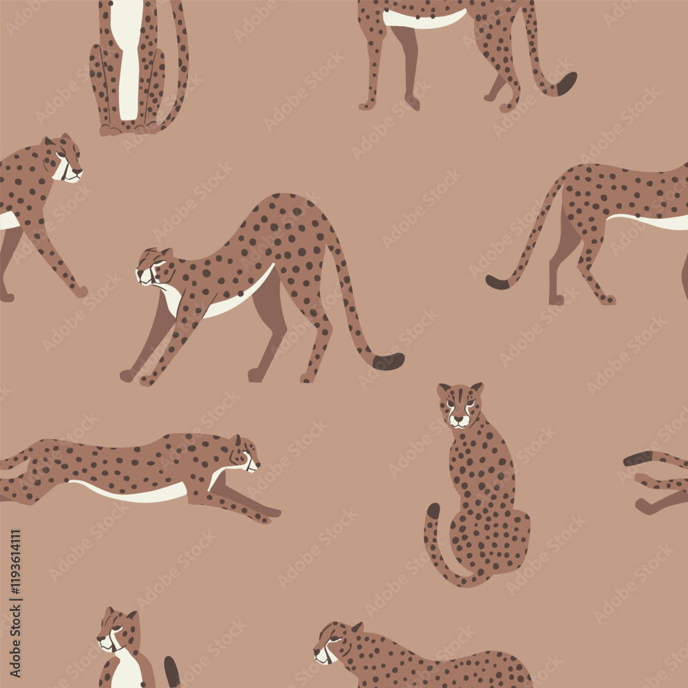 Samolepka Cheetah big cat exotic seamless pattern - Mocha Mousse - hand drawn vector illus