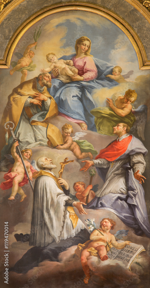 Samolepka BRESCIA, ITALY - MAY 21, 2016: The painting of Madonna among the saints on main
