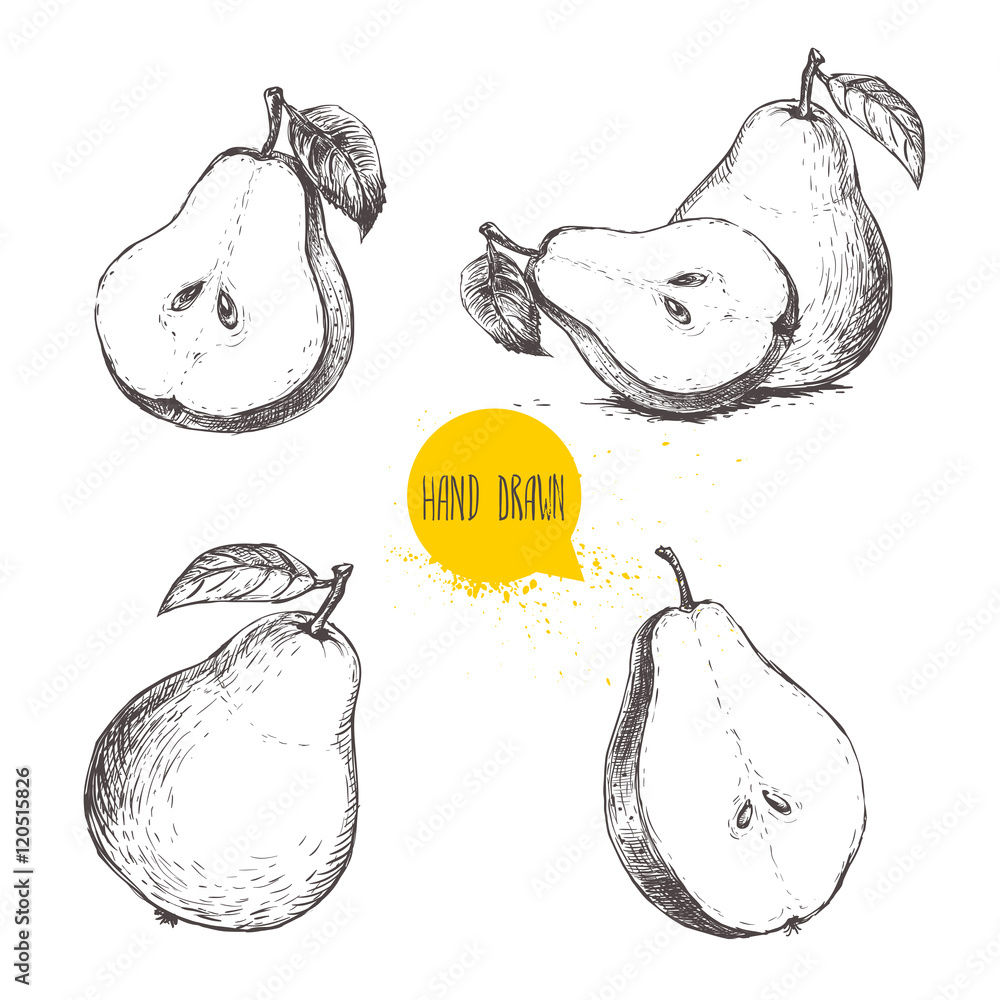 Samolepka Set of hand drawn sketch style pears