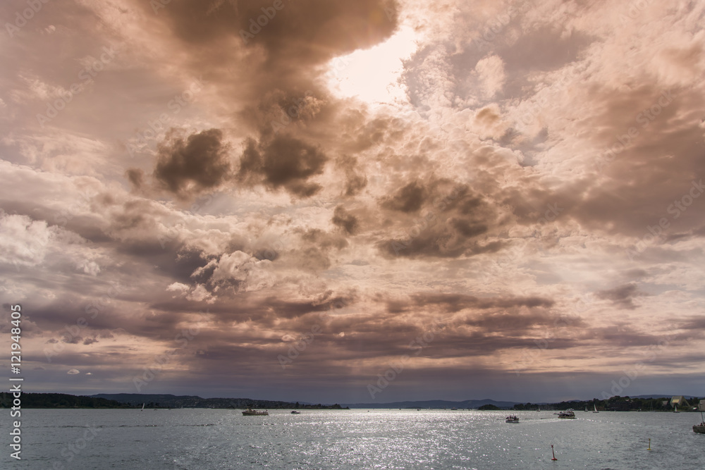 Samolepka Cloudy sky over the bay at dusk