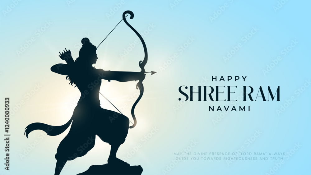 Samolepka Happy Ram Navami portrait Vector Background Design with Silhouette Lord Rama Illustration