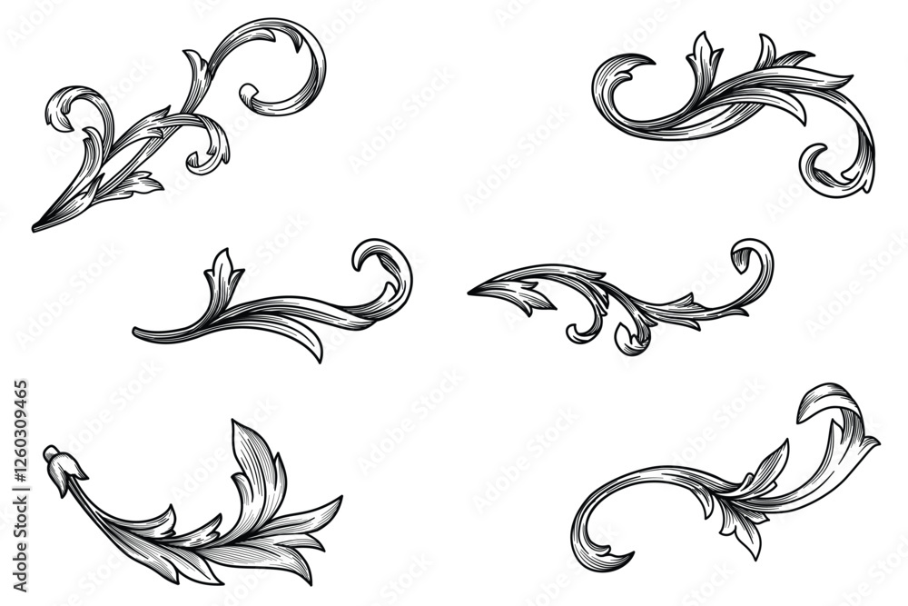 Samolepka Set of Baroque Scroll engraving Ornament
