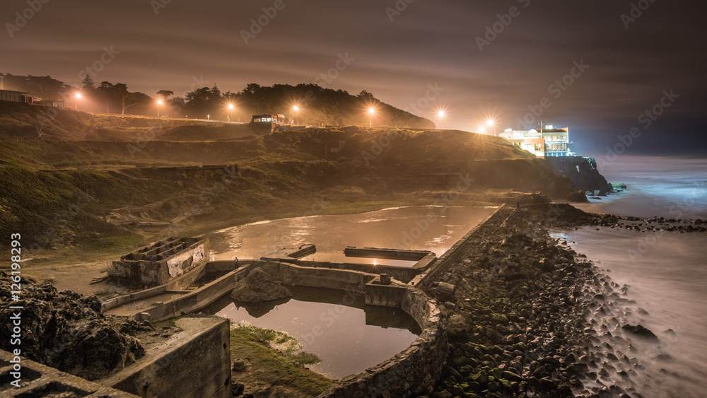 Samolepka Sutro Baths Ruins with a Distant House in San Francisco at Night