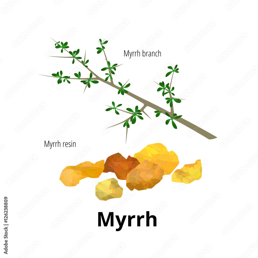 Samolepka Isolated myrrh branch with leaves and resin. Vector illustration