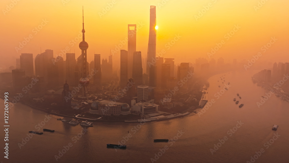 Samolepka Sunrise Aerial Photography of Shanghai, China