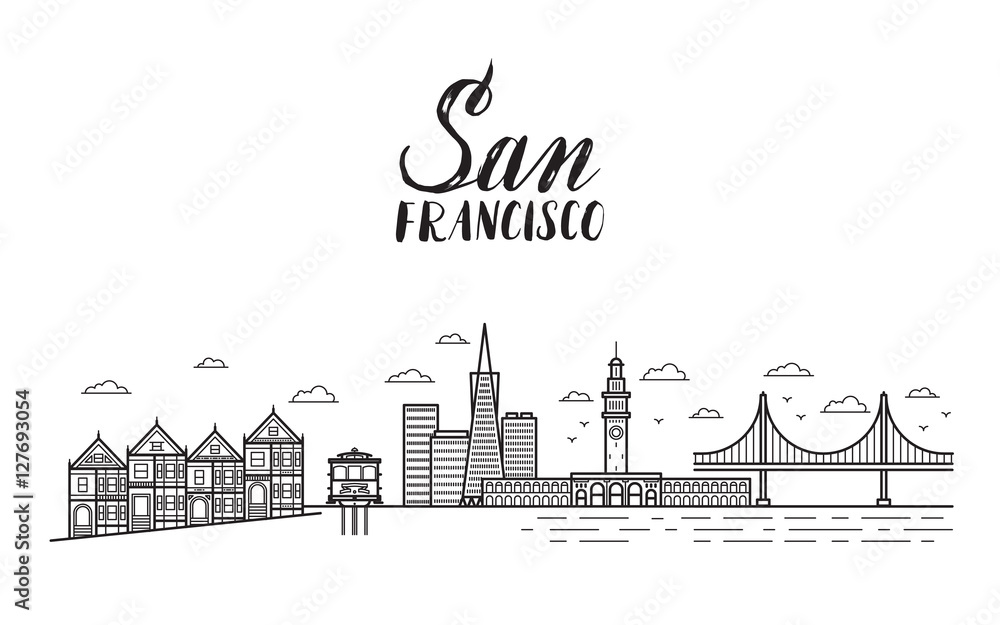 Samolepka San Francisco illustration with modern lettering, city buildings