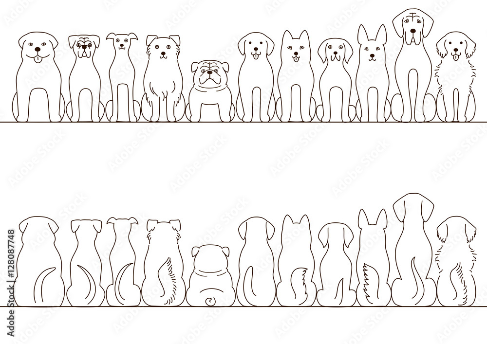 Samolepka large dogs border set, front view and back view, line art