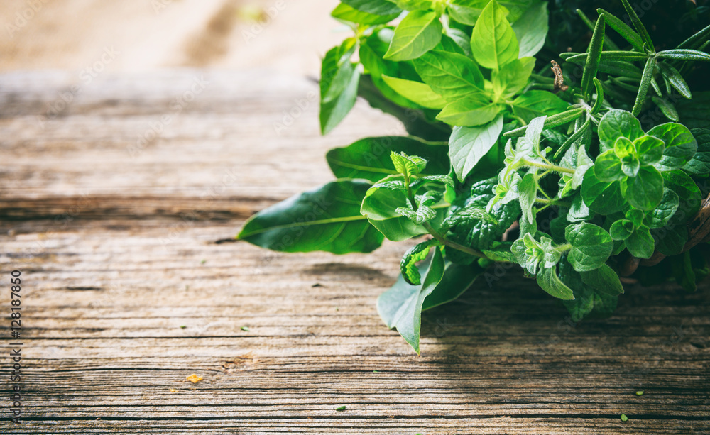 Samolepka Variety of herbs on wooden background