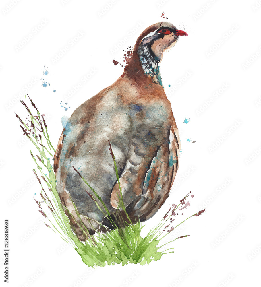 Samolepka Bird partridge quail watercolor painting illustration isolated on white backgrou