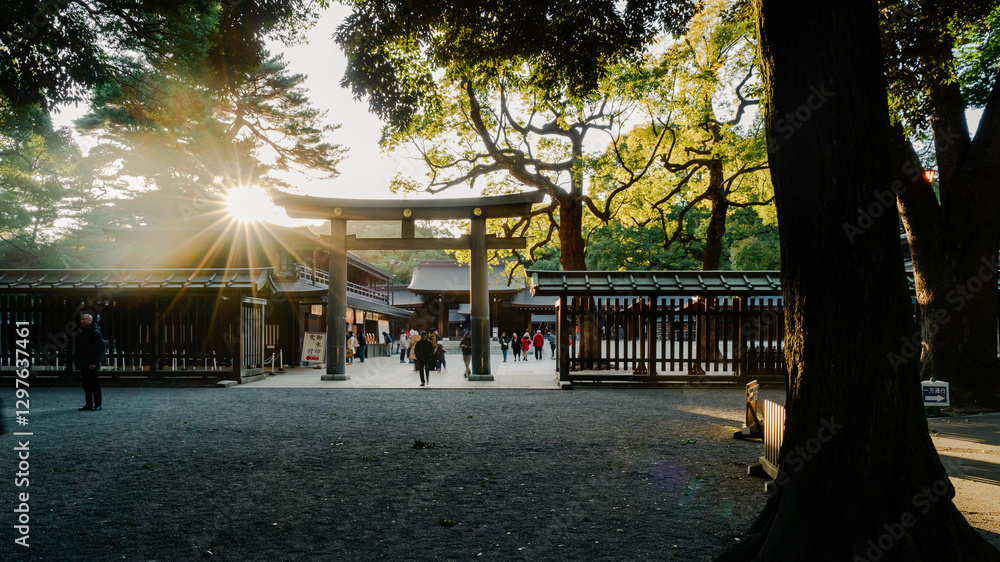 Samolepka Tokyo , Japan -13 Feb 2025: Crowded People Walking Towards The Torii Gate At The