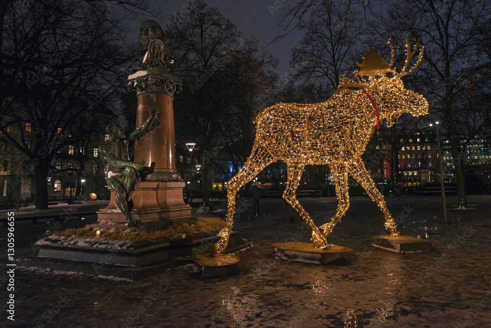 Samolepka Group of Christmas moose made of led lights at Nybrokajen with t