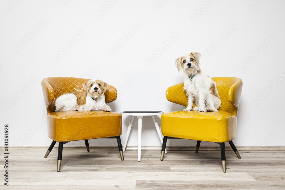 Samolepka two little dogs sitting on armchairs