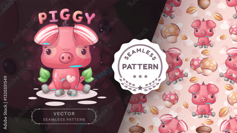 Samolepka Seamless pattern cartoon character adorable pig, pretty animal idea for print t-shirt, poster and kids envelope, postcard