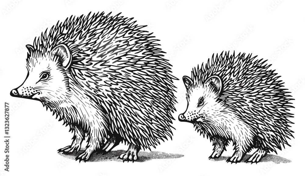 Samolepka Vintage hedgehog illustration vector, isolated wild pet sketch, line art engravi