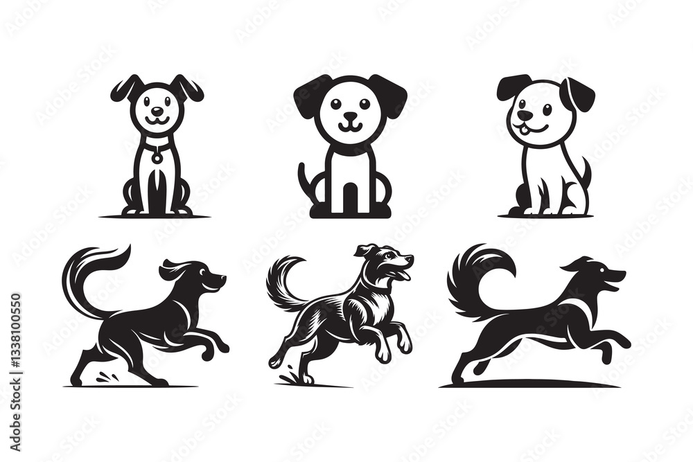 Samolepka Set of cartoon style Dog Silhouette icon , isolated on a white background