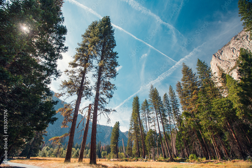 Samolepka Pine trees and mountains of the Yosemite National Park, USA