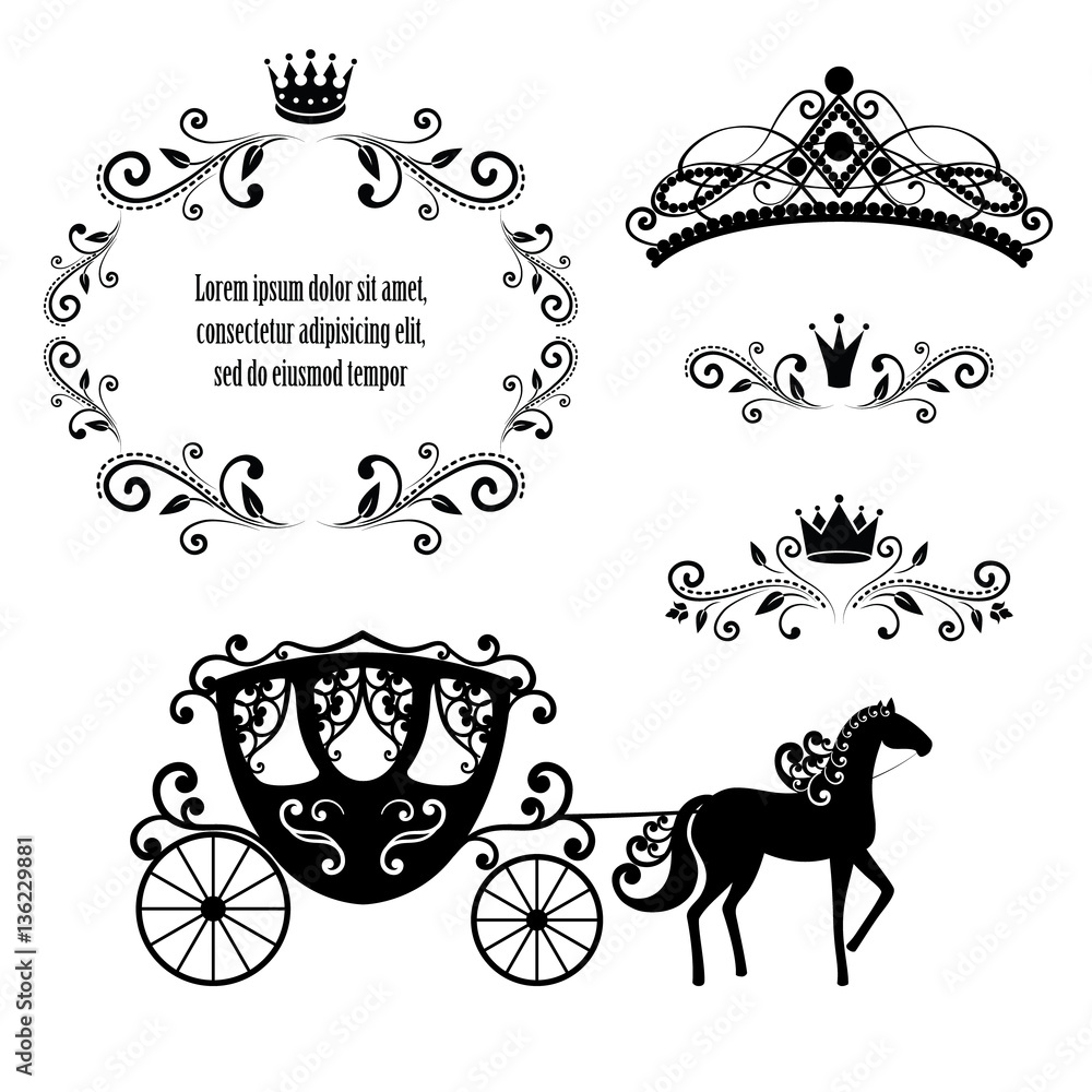 Samolepka Vintage frame with crown, ornamental style diadem and carriage.