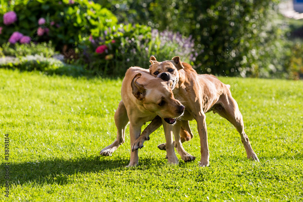 Samolepka Brown Labrador dogs fighting with each other