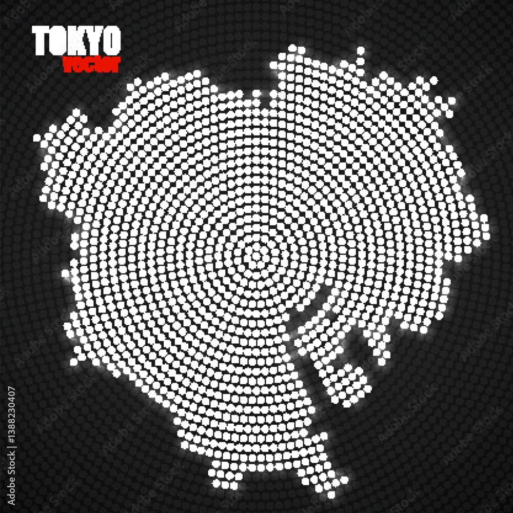Samolepka Abstract map Tokyo of glowing radial dots, halftone concept