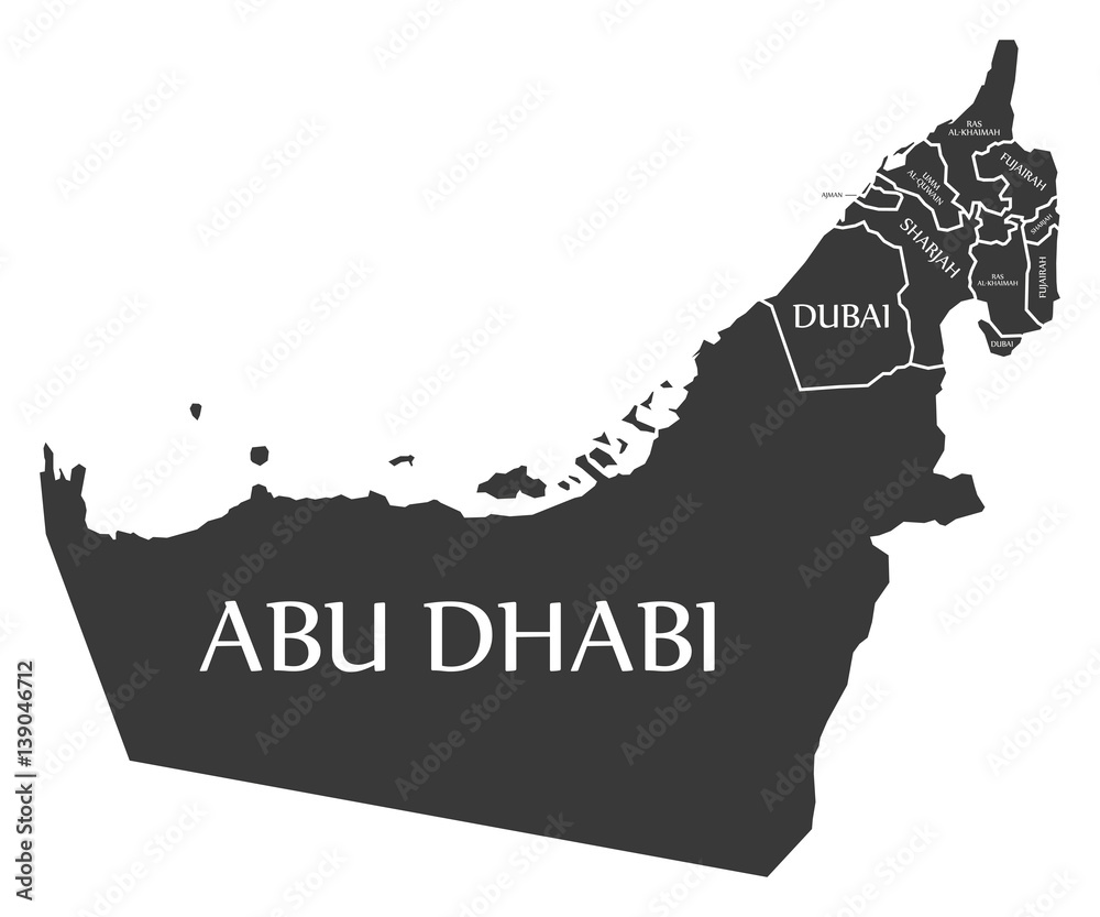 Samolepka United Arab Emirates Map labelled black illustration