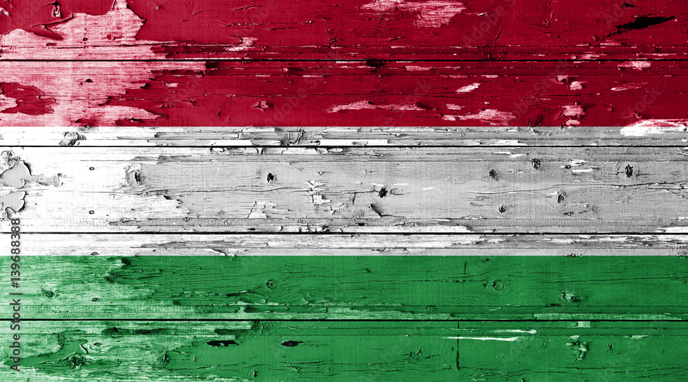Samolepka Hungary flag on wood texture background with old paint peels