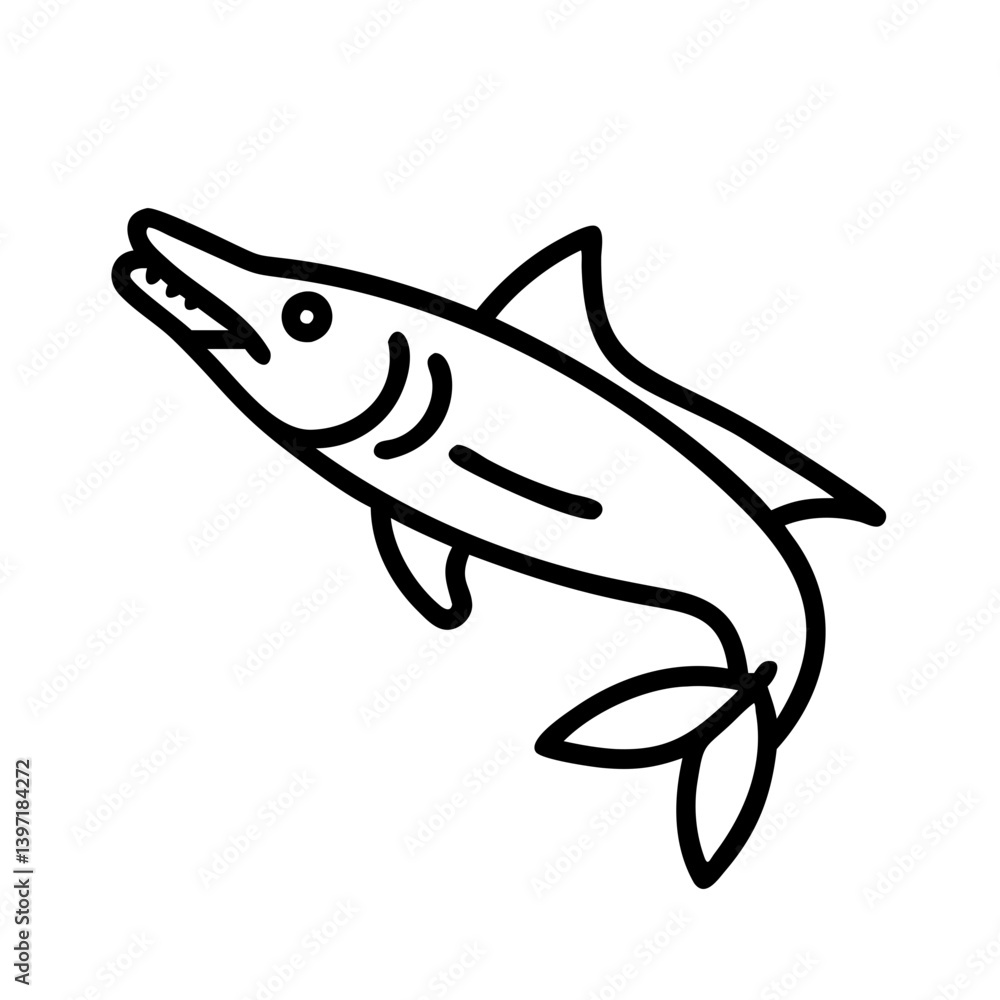 Samolepka Barracuda fish outline drawing vector illustration predatory sea animal icon des