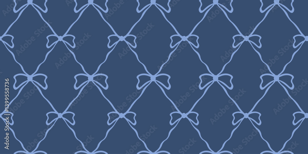 Samolepka Seamless Coquette trellis pattern with blue Bows and Ribbons