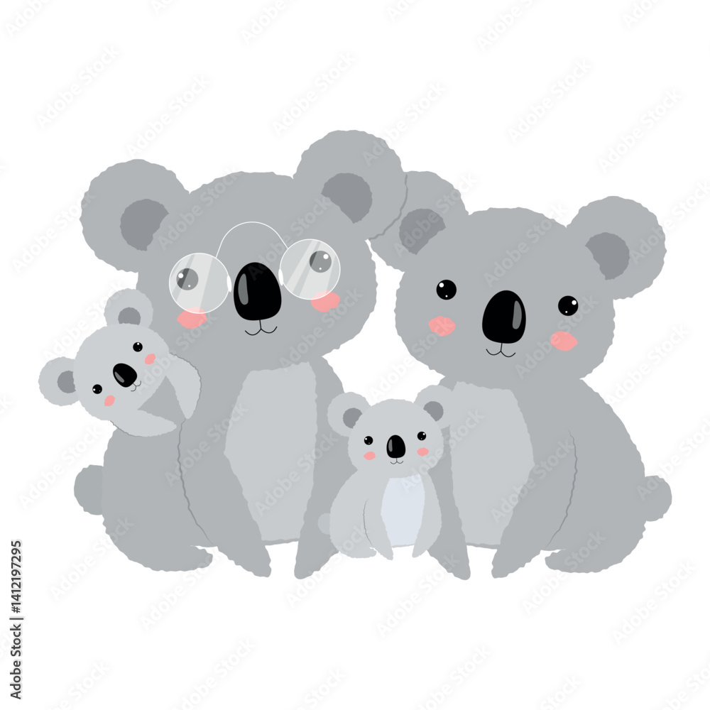 Samolepka Tropical illustration with cartoon cute koalas Family.