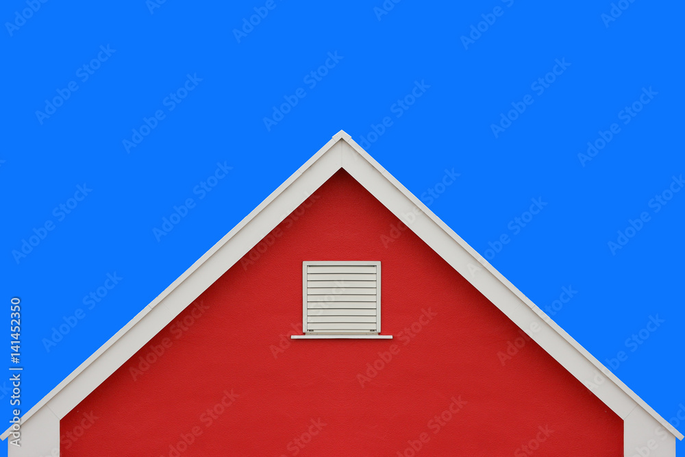 Samolepka Red house wall gable roof and clear blue sky