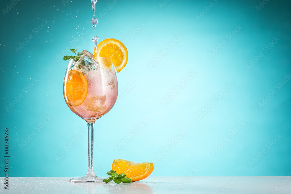 Samolepka The rose exotic cocktail and fruit on blue