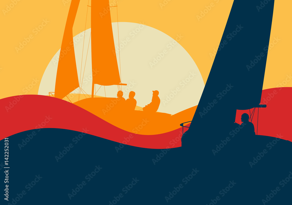 Samolepka Yachts sailing regatta ocean landscape with sunset