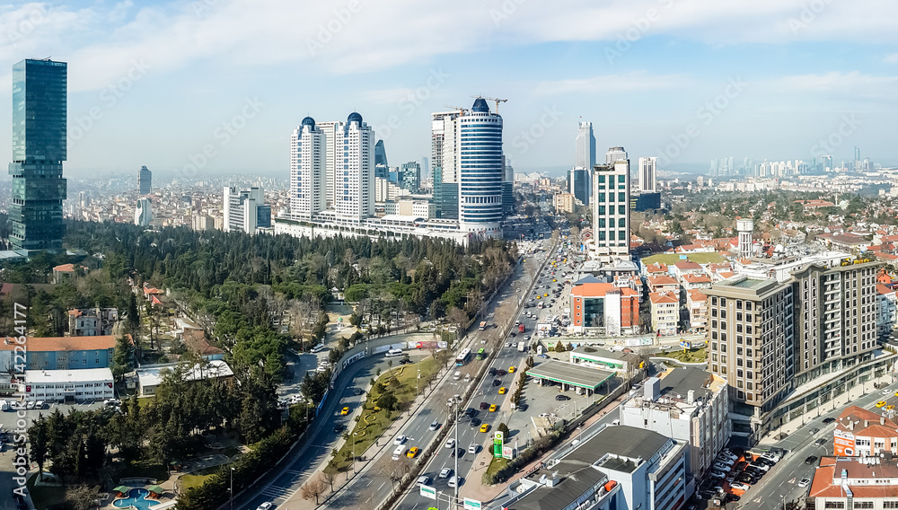 Samolepka Istanbul, Turkey - February 22, 2017: Aerial view Levent district in Istanbul,