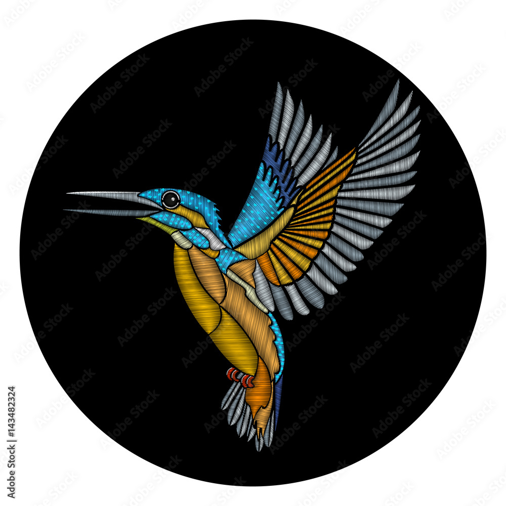 Samolepka Embroidery flying Kingfisher on a black background