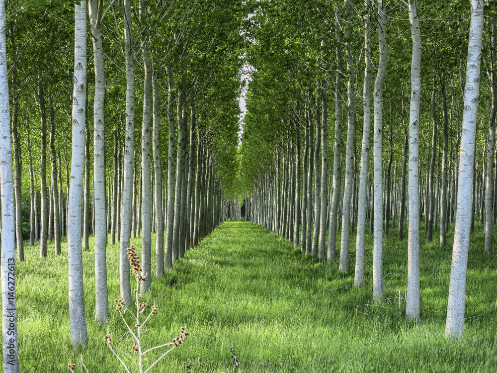 Samolepka Rows of poplar trees in the countryside, Tuscany Italy