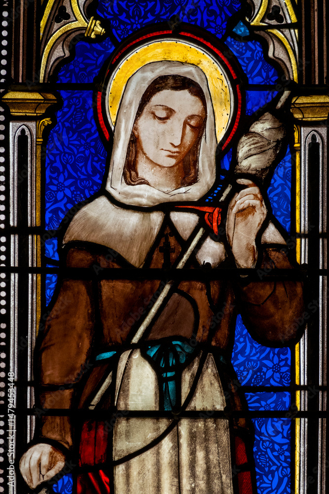 Samolepka Stained glass (19th century) of Saint Germaine. Catholic Saint.