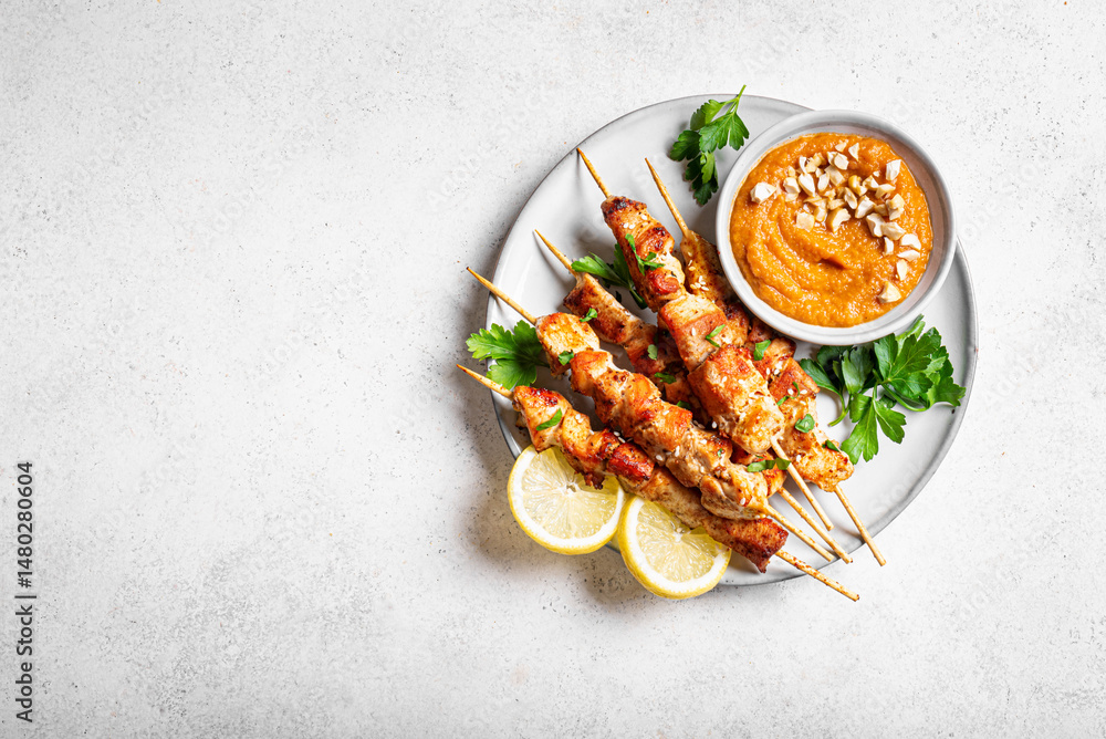 Samolepka Grilled chicken satay with spicy peanut sauce