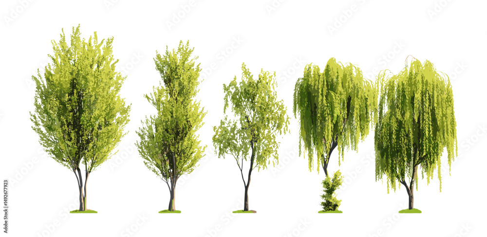 Samolepka Isolated Salix caroliniana coastal plain willow tree cutout in sunlight, vector illustration, habitat restoration plants, native wetland species, landscape greenery, natural ecology